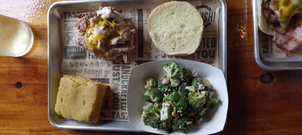 Food is amazing! We stopped on the way back from Grimshaw Farms. I had the Huey hog sandwich. My husband half a pig plate. We will be traveling the 45 minutes for bbq.